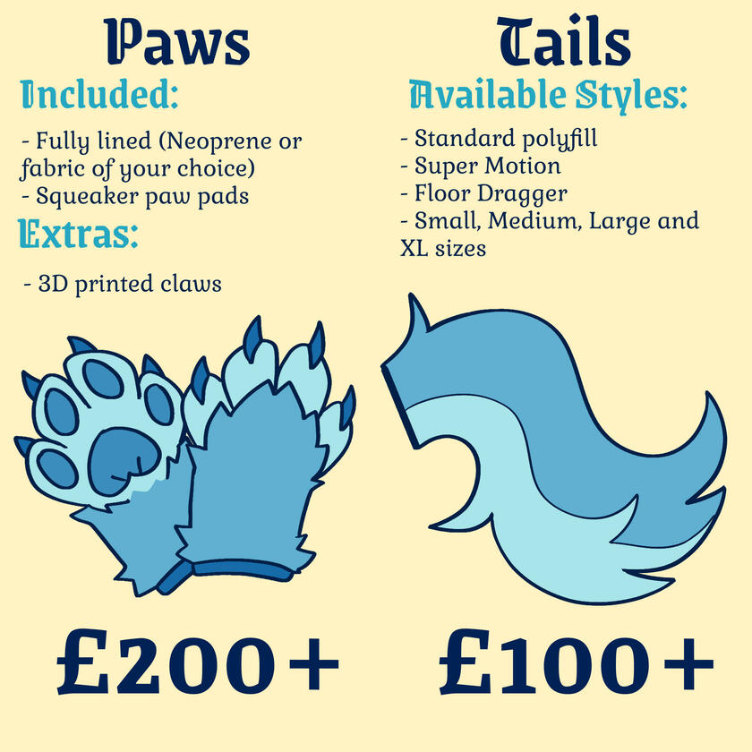 The prices listed below are starting estimates for quotes. Please use the fursuit quote form for exact pricing.